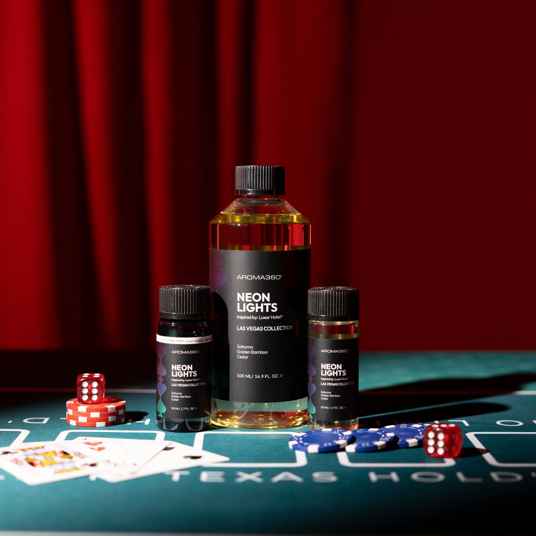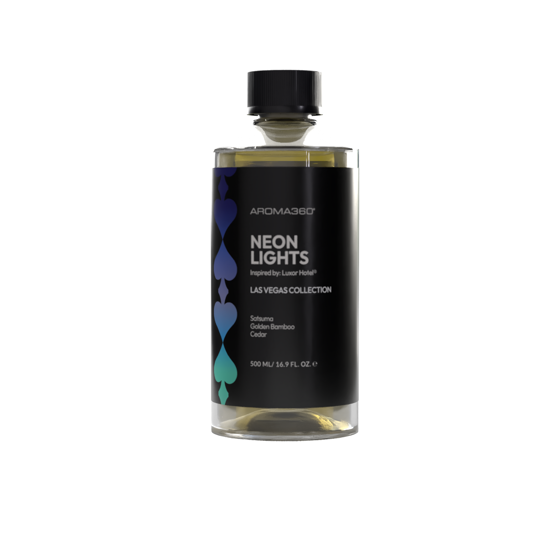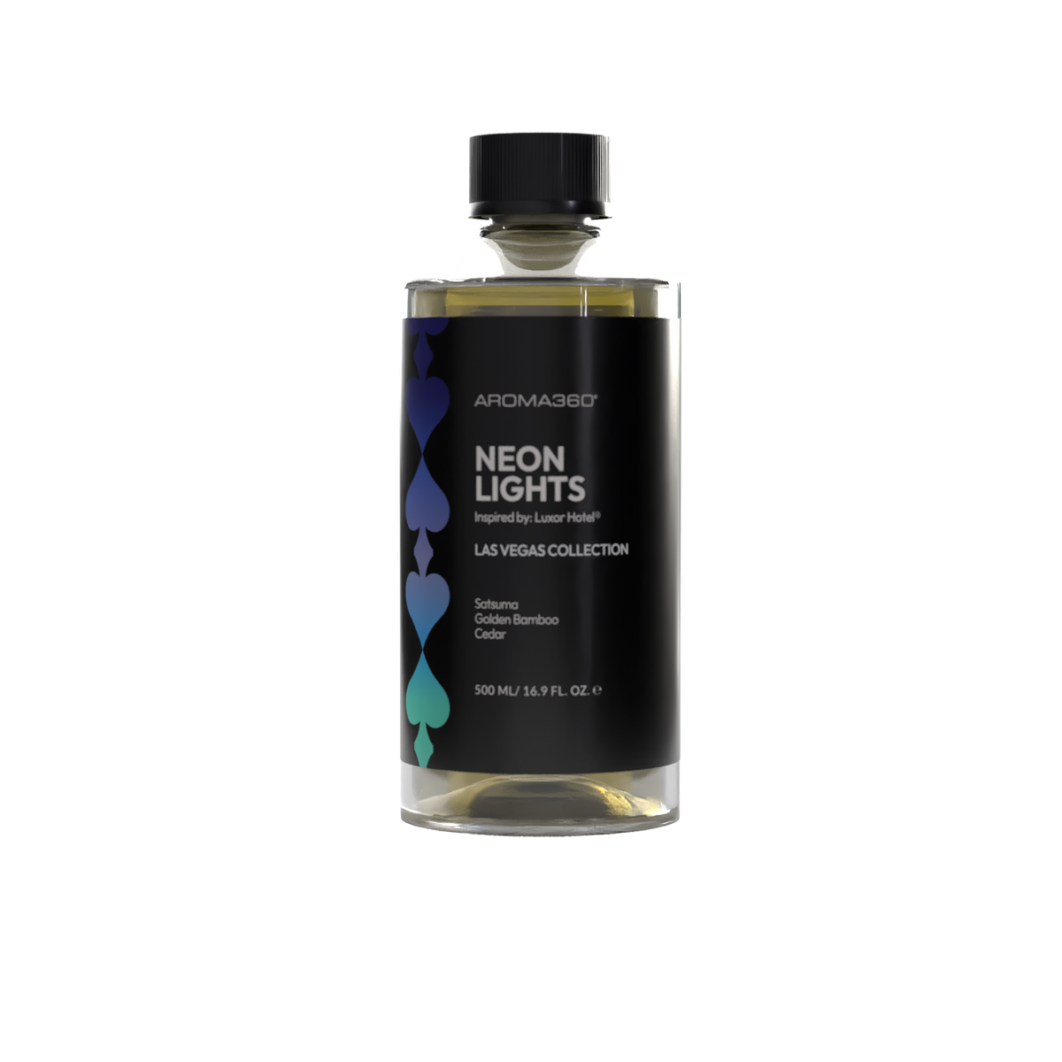 Inspired by the bold energy of Luxor Hotel® in Las Vegas, Neon Lights fragrance oil captures the thrill of exploration and the mystique of ancient Egypt. A top note of Satsuma and Golden Bamboo sparks the excitement of the lively casino and towering pyramid. At its heart, Jasmine and Soft Woods echo the wonder of the museum’s artifacts, while a base of Amber and Musk lingers with the surreal glow of Vegas nights.