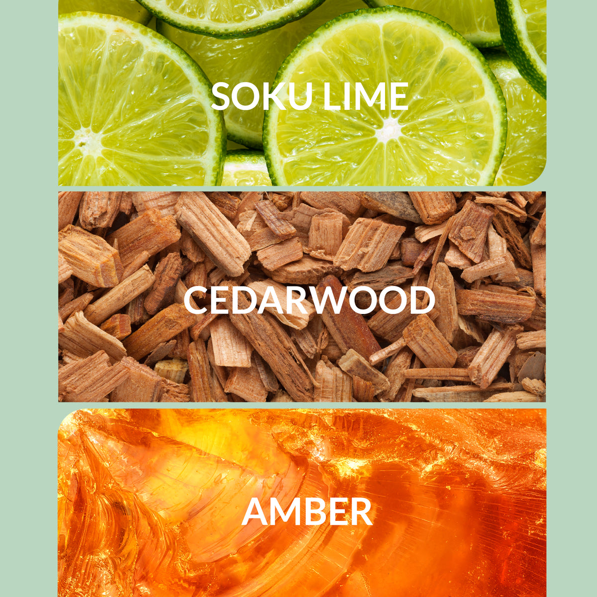 Awaken with the crisp scent of Soku lime, lemon citrus, cedar wood, amber musk, white tea bloom, enchanting rose, and layers of deep peony.