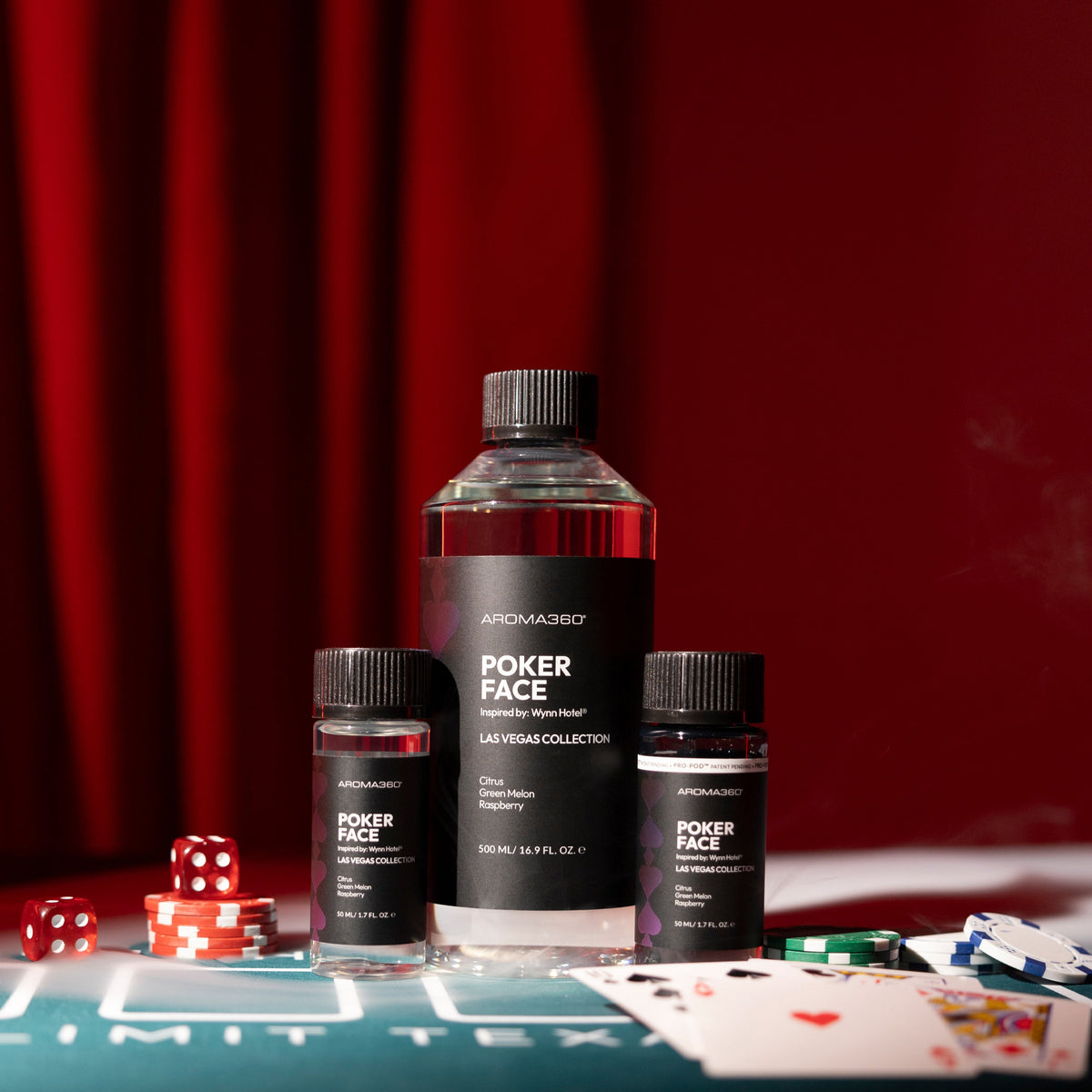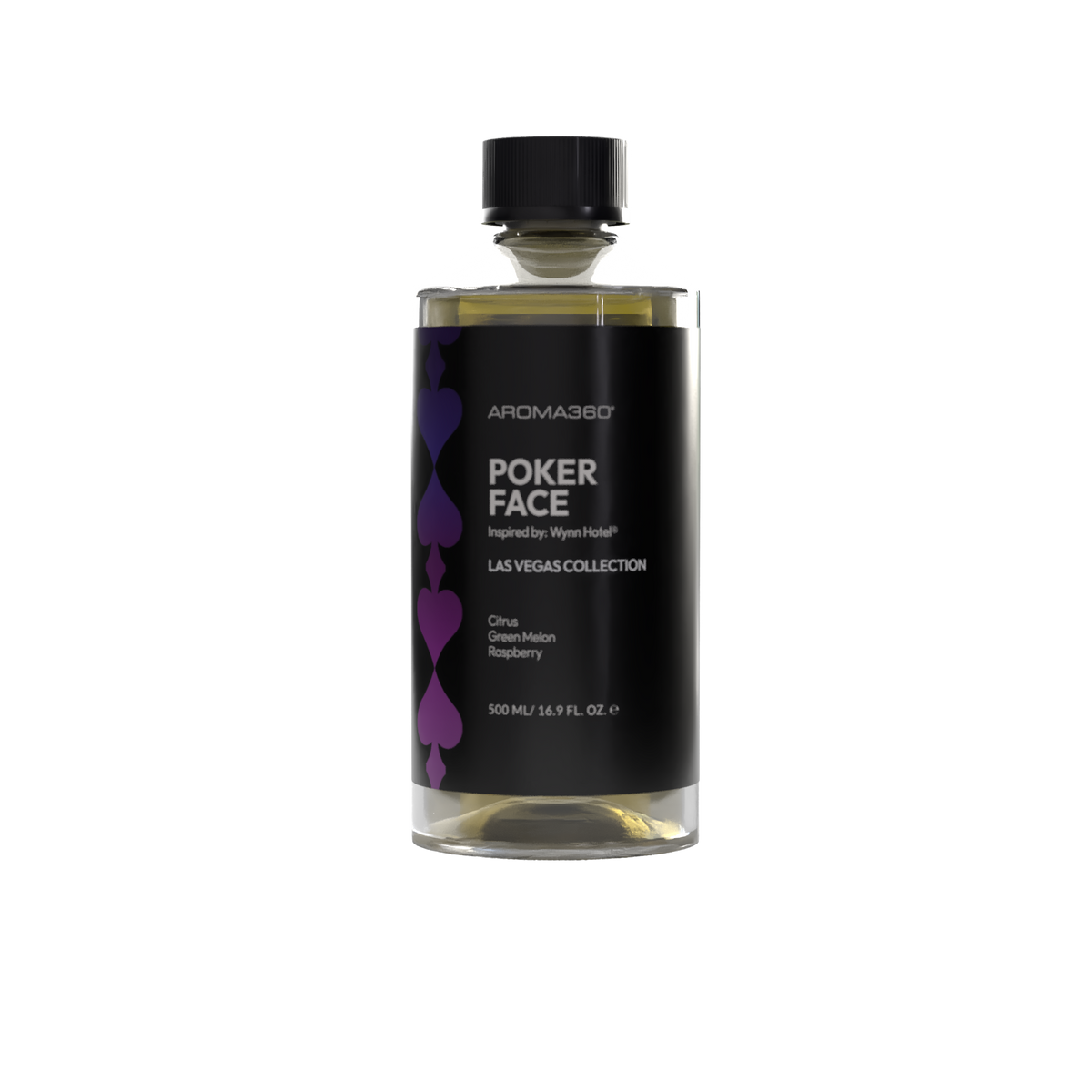 Inspired by the timeless luxury of Wynn Hotel®, Poker Face fragrance oil embodies elegance and excitement. A top note of Lemon and Green Melon captures the refreshing ambiance of its world-class spa and lush garden views. Lily and Jasmine at the heart reflect the sophistication of its grand floral displays, while a base of Raspberry, Oakmoss, and Musk lingers like the thrill of a winning hand at the blackjack table.